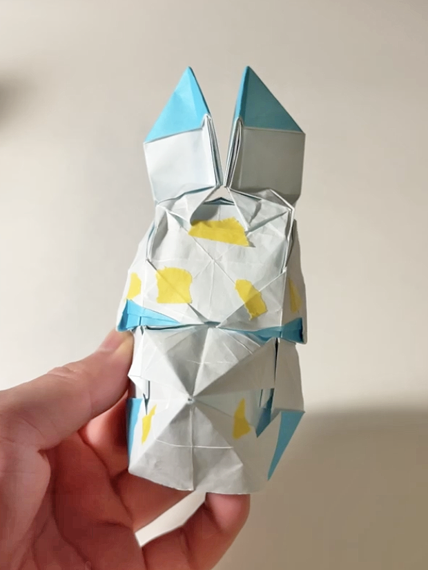 A prototype made with a 12-grid layout. The face section is a bit too long, and the ear design needs refinement.